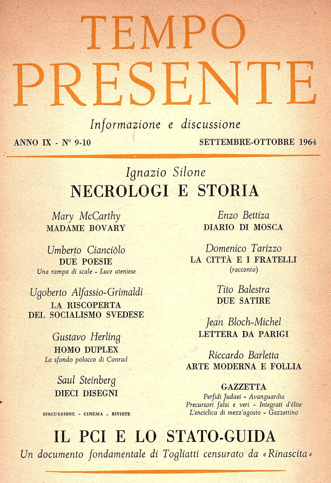 Tempo presente. Informazione e discussione Anno IX, N° 6 Giugno & N° 9-10 Settembre-ottobre 1964