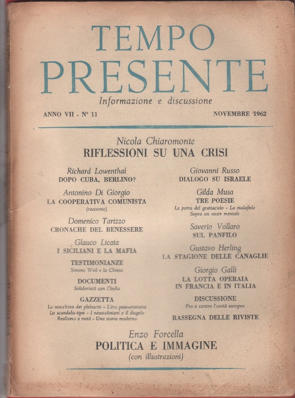 Tempo presente. Rivista letteraria. Anno VII. 1962. n. 11 novembre