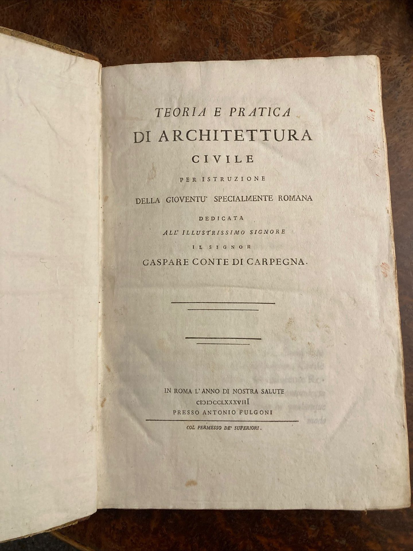 Teoria e pratica di Architettura Civile per istruzione della gioventù specialmente romana dedicata all'Illustrissimo Signore il Signor Gaspare Conte di Carpegna