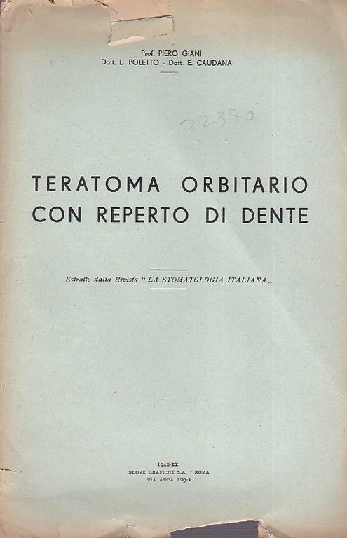 Teratoma orbitario con reperto di dente. Estratto dalla Rivista 'La Stomatologia Italiana'