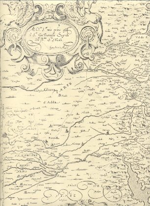 Copia anastatica della carta del Magini su cartoncino di cm. 45 x 64, parte incisa cm 35 x 46. Cartiglio in alto a sinistra.