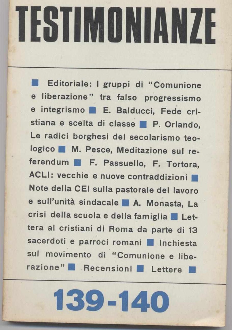 Testimonianze - n. 139-140 Novembre-Dicembre 1971 (Rivista religiosa a carattere politico-sociale)