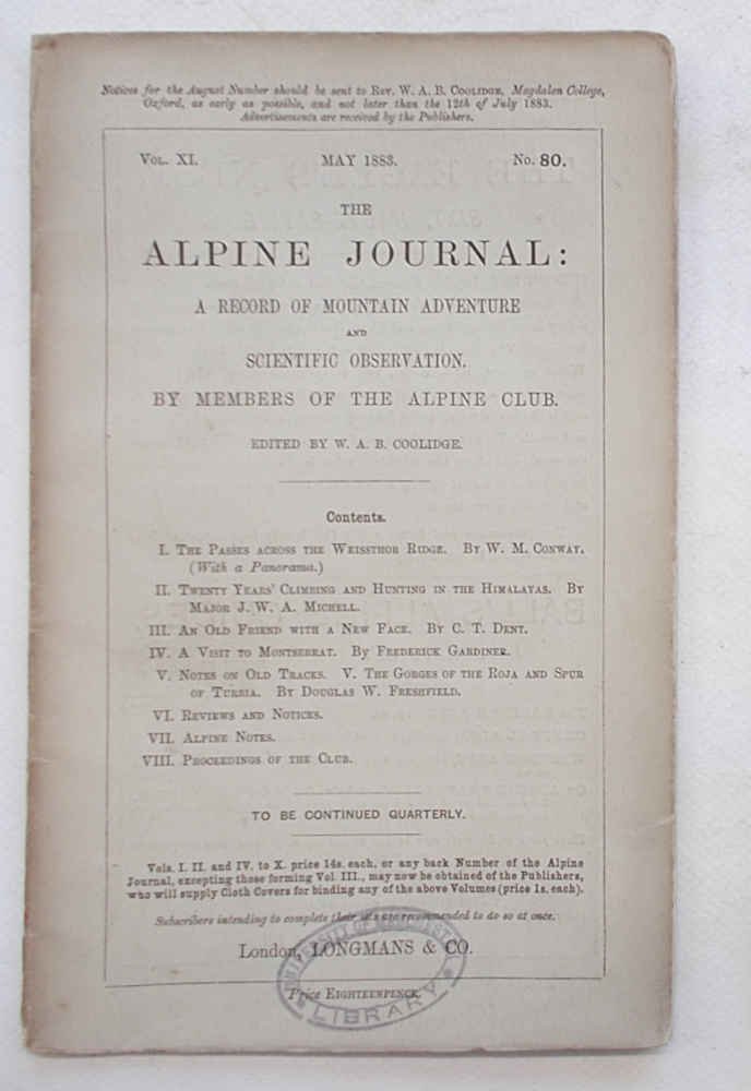 The Alpine Journal. May 1883. Vol. XI. No. 80.
