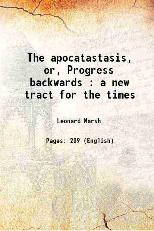 The apocatastasis, or, Progress backwards : a new tract for the times 1854