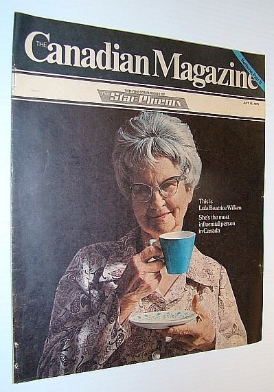 • The Canadian Magazine, July 12, 1975 - Cover Photo of Lula Beatrice Wilken, Canada's Most Influential Person Lula Beatrice Wilken of Moose, Jaw, Full-page Mars ad features colour photo of the ill-fated Pontiac, Astre, Catalogue shopping in Canada, The Amazing Moe Norman - Canada's Best Golfer, Doug Wright's Family, Cabbage recipes, Norman Bethune's conversion from a heavy-drinking womanizer into, a model of ascetic devotion in China Golf Magazine Back Issues