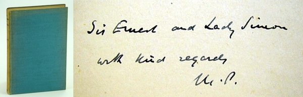 Inscribed and initialed by Polanyi to "Sir Ernest and Lady Simon", Sir Ernest Simon, The Lord Simon of Wythenshawe, and his wife, upon front free endpaper. Simon, a British industrialist, politician and public servant, had a long association with the University of Manchester where Polanyi was a professor at the time of publication. Ink stamp reading "University of Manchester Broomcroft Hall" atop front free endpaper and inside back board solidifies this provenance as it was then the residence of the Simons. ix, [1], 116 pages. Includes these essays: The Rights and Duties of Science (1939), Collectivist Planning (1940), Soviet Economics - Fact and Theory (1935), and Truth and Propaganda (1936). "In those years the ideas of liberty. were left almost uncultivated." - from Preface. Minimal faint pencil markings to contents. Average wear and some fading to publisher's pale green cloth which is sunned at spine. Binding intact. Heavy wear to dust jacket which is now preserved in archival-grade Brodart. Today, the thoughts of the author, a scientist and philosopher who lived from 1891 to 1976, are faithfully upheld by a society named in his honour. Book