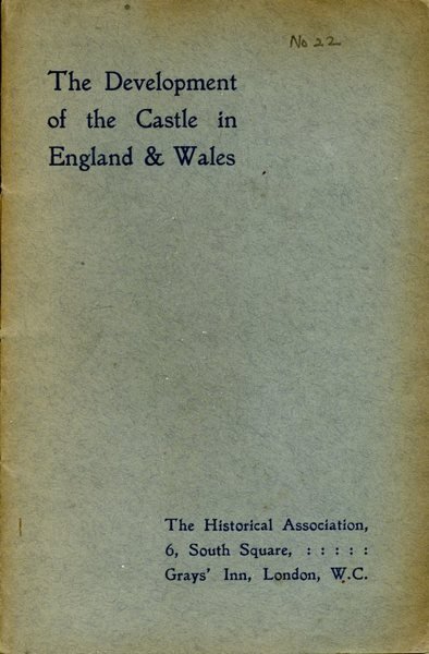 No 22 on front cover. No other marks or inscriptions to lightly foxed contents. No creasing to covers. Clean tight pages in booklet form with string binding and sunning to covers. 32pp. A concise account of the development of the English and Welsh castles including sketches of castle designs, Historical Association Leaflet No 22. Scarce first edition of this work.