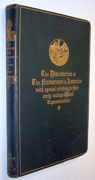 130 pages. Index. Bibliography. Frontispiece. Ten plates at back. Sixteen informative pages of advertisements. Text in English, translated from the German. Seeks, in part, to to address errors of Carl Christian Rafn in his 1837 work "Antiquitates Americanae". Forest green cloth exterior adorned with attractive gilt lettering and decorations. Top edge gilt. Usual library markings. Binding intact. Average wear. A sound copy of this informative work. Book