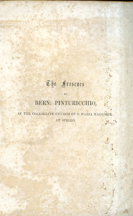 In-4°, pp. 16, brossura marmorizzata posteriore. Una vedutina xilografica di Spello alla prima patina. Fioriture diffuse. Edizione originale, assai rara. Importante contributo sugli affreschi del Pinturicchio a Spello del celebre archeologo e storico dell'arte britannico (Parigi, 1817-Londra, 1894), scopritore di Nininve e di Nimrud. 'This is an account of the wall-paintings painted by Pinturicchio in the Baglioni chapel in the cathedral church of Santa Maria maggiore at Spello in Umbria in 1500. The subject of the paintings is the life of the Blessed Virgin and the young Christ. The only illustration is a headpiece view of the ancient town-gate of Spello.' (dalla descrizione del COPAC delle biblioteche britanniche).