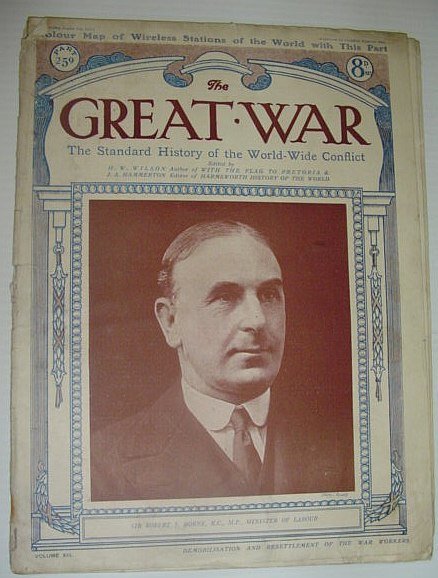 - The Great War Magazine - Part 259 - 2 August 1919, *Demobilisation and Resettlement of the War Workers* Cover, portrait of Sir Robert S. Horne, K.C., M.P., Minister of Labour. Please note: does not include colur map., Includes final portion of the chapter entitled "The, Demobilisation of the British Army", with photos. Centerfold photos of captured German booty, including a large cache of gas shells at Luttre, Belgium. Chapter CCCVIII - The Demobilisation and Resettlement, of the War Workers, with photos. Chapter CCCIX - The Wonders of Wireless in the War, History Military Magazine Back Issues