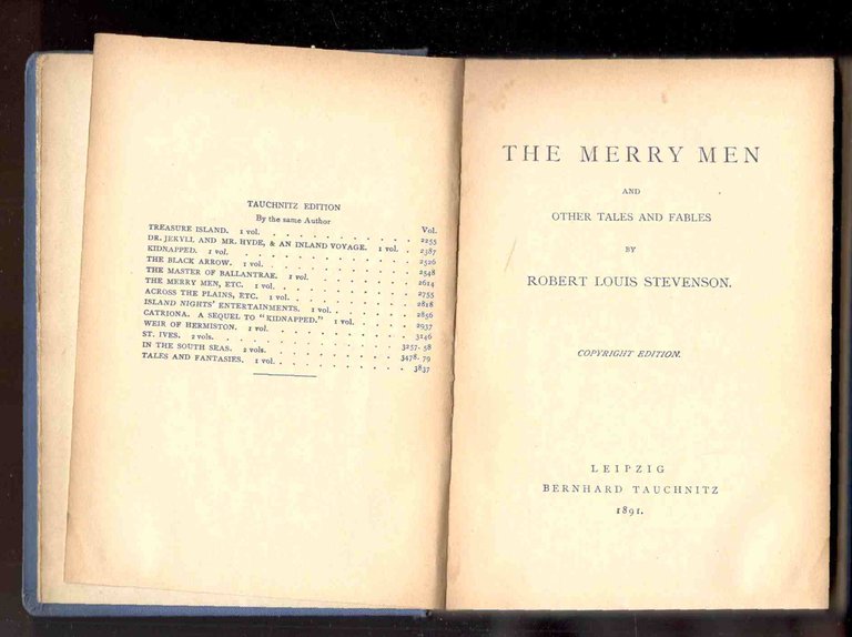 In 16°, pp. 302, (2). Tela azzurra dell'epoca con titoli oro sul dorso. Un leggero segno di umido all'angolo esterno inferiore, per il resto copia in buono stato. Collection of British and American Authors, Vol. 2755. Copyright edition.