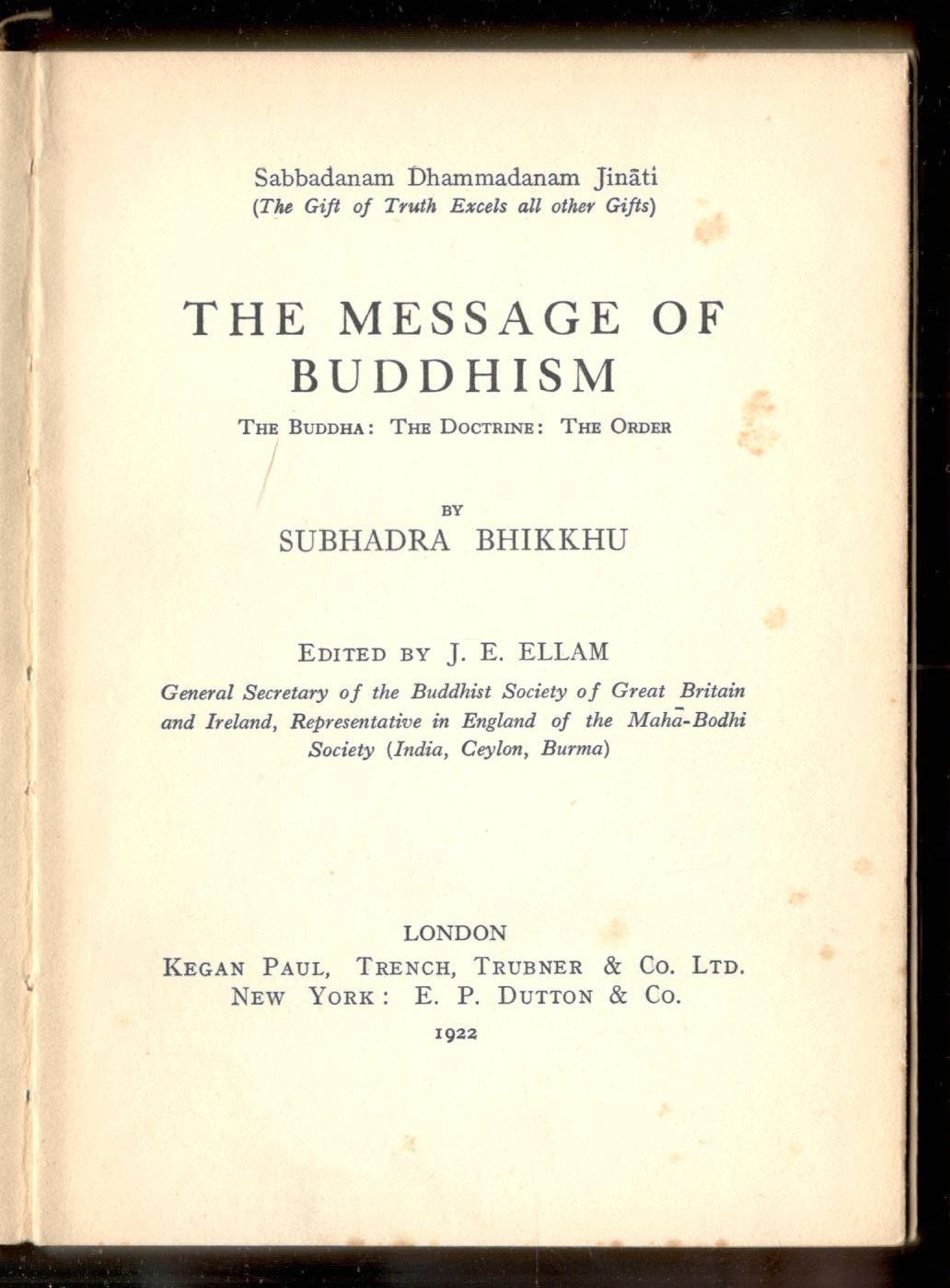 The message of buddhism. The Buddha. The Doctrine. The Order. Edited by J. E. Ellam