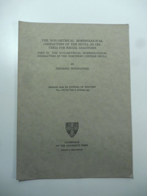 In 8 (cm 18,5 x 25,5), pagine numerate da 96 a 108 con illustrazioni nel testo. Brossura editoriale. Estratto editoriale da The Journal of Anatomy.