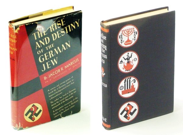 xvi, [2], 365 pages. Bibliography. Index. "A concise and stirring picture of Jewish life in Germany against an historical background of more than a thousand years. The author has lived in Germany during the crucial years of the rise and growth of the Nazi party. A thoughtful discussion of the future of the Jews in Germany climaxes this brilliant volume." - dust jacket. "By far the best historical study which has appeared in the English language". - Harry Elmer Barnes. "Presents the history of the German Jew with great clarity and insight. I have learned a great deal from it". - Reinhold Niebuhr. Publisher's black cloth handsomely adorned in red and silver. Light wear to book which is clean and unmarked. Above-average wear to dust jacket now preserved in archival-grade Brodart. A quality copy of this fascinating study published just after Hitler had taken power. Weiner Library Cat #3 - 103. Book