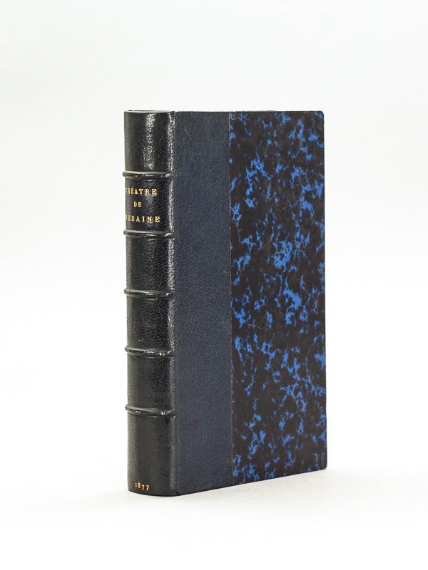 Un des 500 exemplaires sur papier vergé, 1 vol. in-18 reliure demi-maroquin bleu, dos à 5 nerfs, tête dorée, reliure signée de Champs, Librairie Générale, Paris, 1877, xlii-386 pp. Bon état (dos très lég. frotté, bel ex-libris gravé par Valton, aux initiales A. H. sur une porte ouverte devant laquelle est ouvert le Manuel des ouvriers). Vicaire, VII, 463