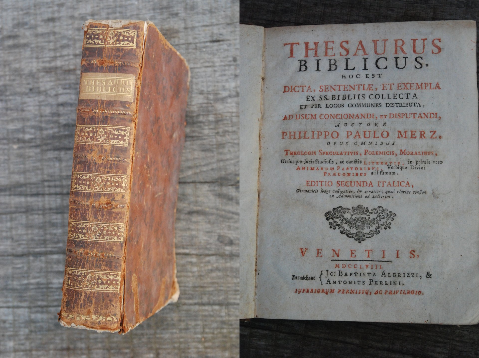 PHILIPPO PAULO MERZ THESAURUS BIBLICUS dicta sententiae et exempla editio secunda. venetiis 1758 .