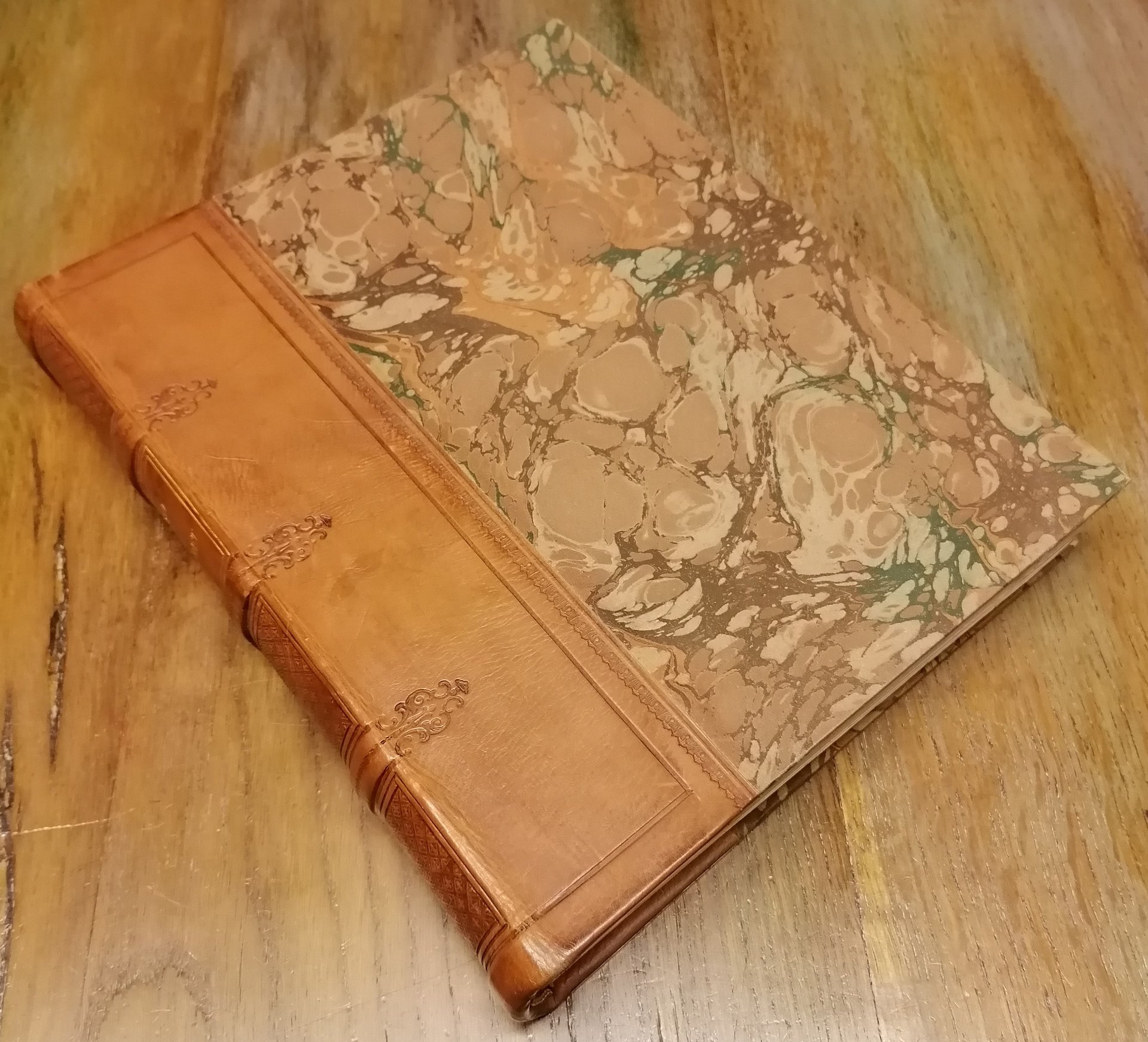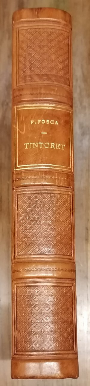 (Pittori veneziani - Cinquecento - Tintoretto - Jacopo Robusti) In 4° piccolo, legatura coeva d'amatore, dorso a cinque nervi con titoli in oro, spranghe ornate e ricche impressioni a secco, carta marmorizzata ai piatti, taglio di testa colorato, conservato il piatto anteriore della brossura originale, pp. (10),173,(7), con testate, capolettera e finalini figurati, 100 tavole in bianco e nero fuori testo, stampate in fototipia nello stabilimento Vigier et Brunissen di Parigi. Quinto volume della collezione "Les Maitres du Moyen Age et de la Renaissance". Esemplare n. 112 della tiratura di 1650 copie su carta Alfa impresse dallo stampatore Couloma di Argenteuil. Al verso della prima carta bianca un timbro, non invasivo, di circolo privato estinto. Elegante volume in ottimo stato di conservazione.