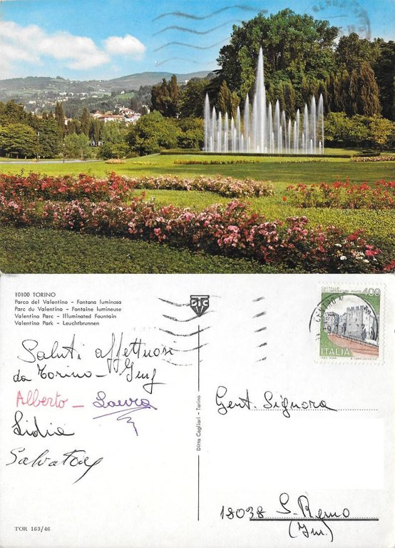 Torino. Parco del Valentino. Fontana Luminosa. Viaggiata