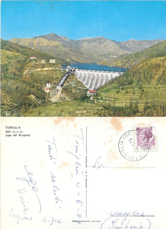 Torriglia (GE). Lago del Brugneto. Viaggiata 1969