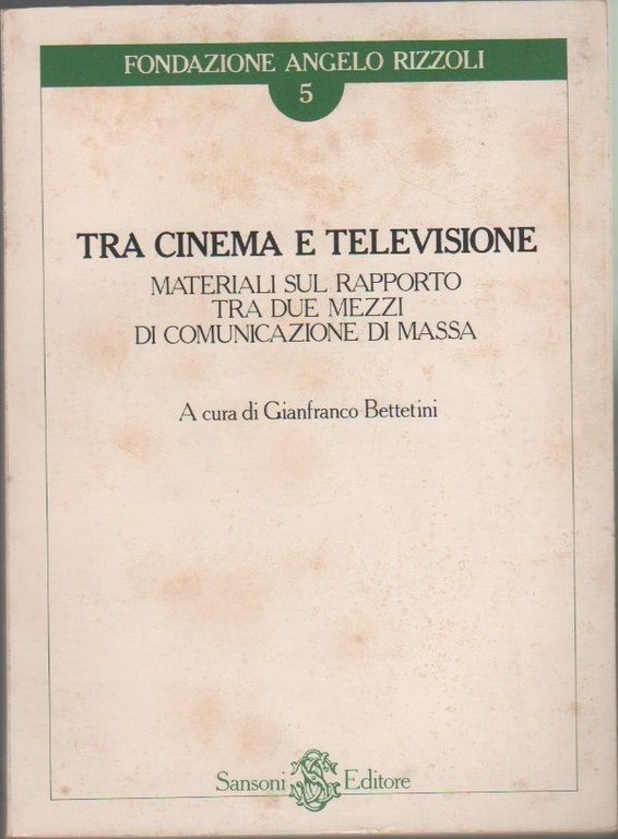Tra cinema e televisione. Materiali sul rapporto tra due mezzi di comunicazione di massa. A cura di Gianfranco Bettetini Sansoni 1981. In 8°; pp. 213;