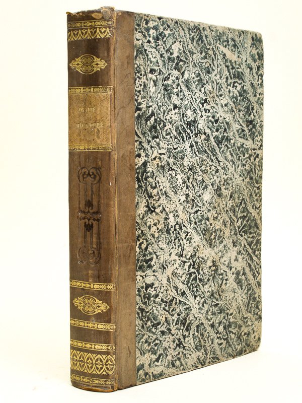 Traité élémentaire de Mécanique industrielle. Résumé des Traités de Christian, Poncelet, d'Aubusson, Coriolis, Hachette, Lanz et Bétancourt, Ch. Dupin, Borgnis, Guenyveau, Leblanc, etc. etc. Secone publication de l'Industrie [Suivi de : ] Manuel et Code d'Entretien et de Construction, d'Administration et de Police des Routes et et Chemins Vicinaux. Résumé des Méthodes d'entretien et de construction les plus simples, les plus économiques, les plus avancées, et de toutes les lois et ordonnances qui régissent la matière, par Stéphane Flachat-Mony et G. Bonnet - [Suivi de : ] L'Industrie. Exposition de 1834, l'ensemble en 1 vol. in-4 relié , rel. d'époque demi-basane marron, dos lisse orné, Chez L. Tenré et Henri Dupuy, Paris, 1835, 2 ff. (faux-titre et titre), 212 pp. et 22 pl. dépliantes sur 23 (Traité de Mécanique) ; 121 pp. avec 4 pl. hors texte et un grand tableau dépliant (le dernier ff. avec la table au verso a été monté en tête) (Manuel des routes) ; 1 f. (titre gravé), 160 pp. avec 38 pl. hors texte (L'Industrie) Bon exemplaire (petit mq. en coiffe sup., mq. 1 pl., 1 coupe frottée en queue, bonne fraîcheur par ailleurs) de ces trois passionnants ouvrages de Stéphane Flachat, dont le rare "Manuel et Code d'Entretien et de Construction des routes", richement illustrés de 60 belles planches (dont de nombreuses planches dépliantes). Chaud adepte des doctrines saint-simoniennes, Stéphane Flachat, connu sous le nom de Mony, fut un des pionniers du chemin de fer en France. Chargé du bassin houiller de Commentry, il en deviendra maire, puis député de l'Allier.
