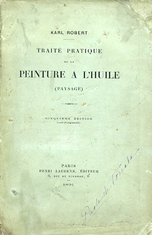 In-8°, pp. 171, (3), brossura editoriale verde acqua a stampa. Numerose tavv. in b.n. f.t. Alcune firme di possesso del tempo. Fioriture e ingialliture lievi, alcuni restauri al dorso e all'angolo superiore destro del piatto, ma buon esemplare in barbe. Quinta edizione, riveduta e aumentata, di pregiata trattazione sulle tecniche della pittura ad olio applicata al genere paesaggistico. Il trattato fa riferimento anche alla teoria dei colori. Indice: Du paysage en général. Théorie de la couleur. Du matériel d'atelier et de campagne. Des couleurs et des vernis. Ce qu'on doit peindre a l'atelier. Le paysage. De l'ebauche. Du ciel. Des terrains et des premiers plans. Des eaux. L'impression d'après nature. Des arbres en général. Composition du tableau a l'atelier d'après les études sur nature. Conclusion.