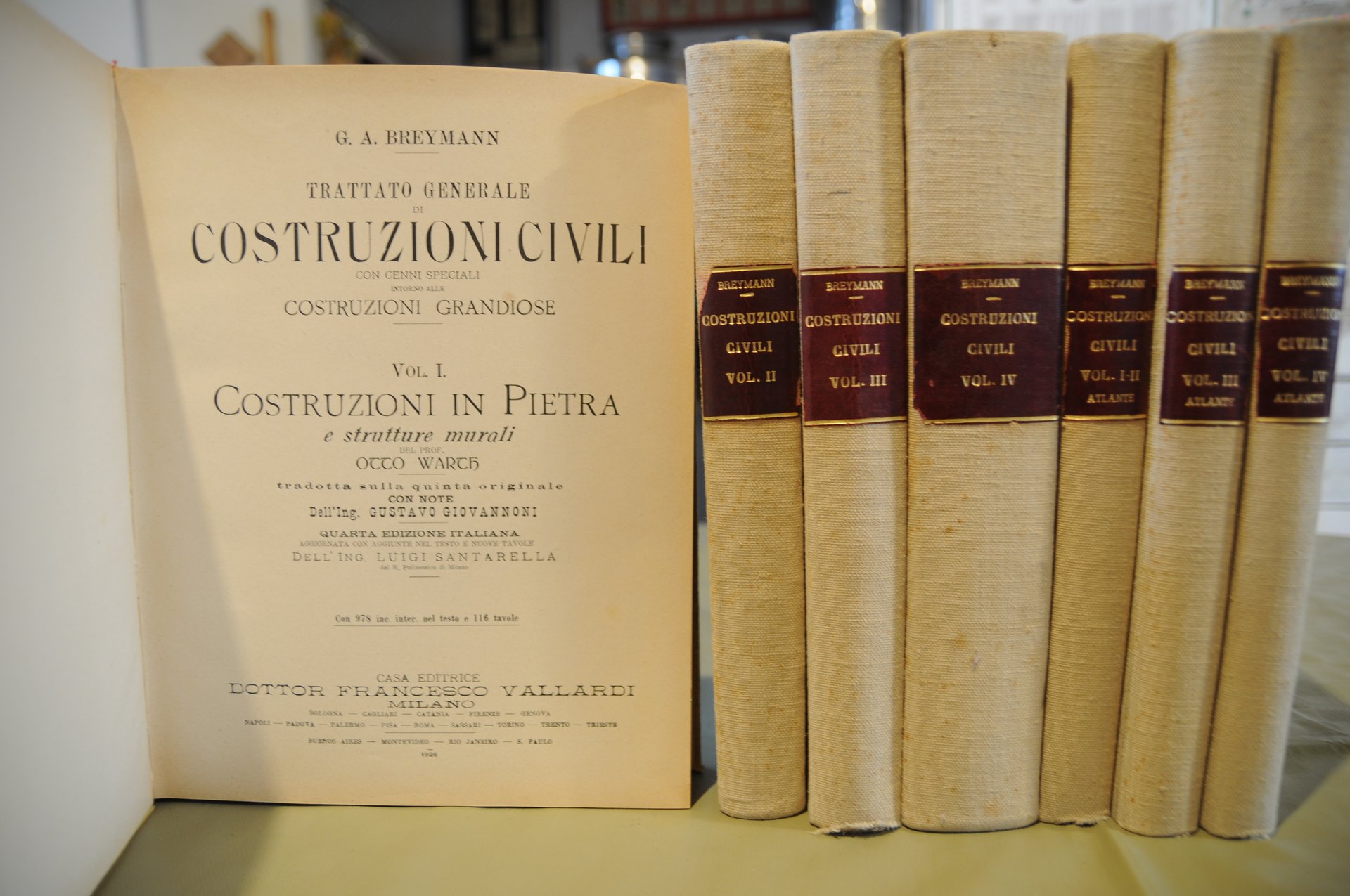 breymann trattato generale di costruzioni civili grandiose otto warck compreso 7 voll. opera cpl. con 2 voll. atlante NUOVISSIMI. VALLARDI 1926 .