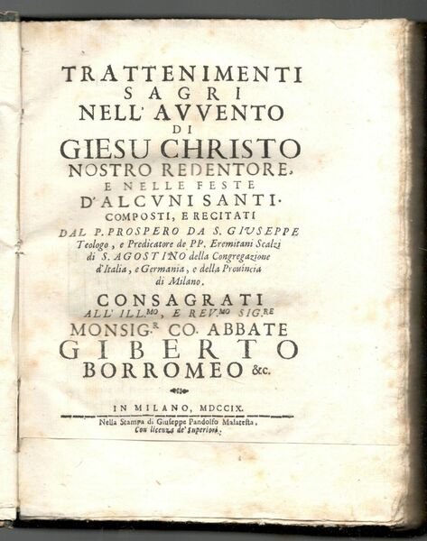 Trattenimenti sagri nell'Avvento di Giesu Christo nostro redentore, nelle feste d'alcuni santi