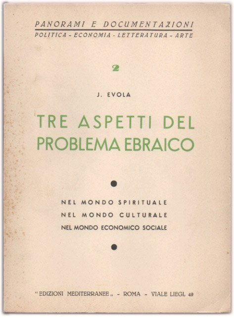 Tre aspetti del problema ebraico. Nel mondo spirituale. Nel mondo culturale. Nel mondo economico sociale.