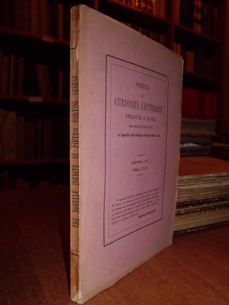 (Curiosità letterarie inedite o rare). Pietro Fortini. Bologna, Gaetano Romagnoli, 1877. Tre novelle inedite di Pietro Fortini senese. In - 16°, br., cop. orig. 110, (1) pp. Edizione di soli 202 esemplari (es. n°198). Ben conservato. << .Le tre presenti Novelle, che nel manoscritto rimasero ancora inedite, superano nell' oscenità quano fino ad oggi ne è stato stampato. >> (dalla Prefazione). Uff. scat. 6