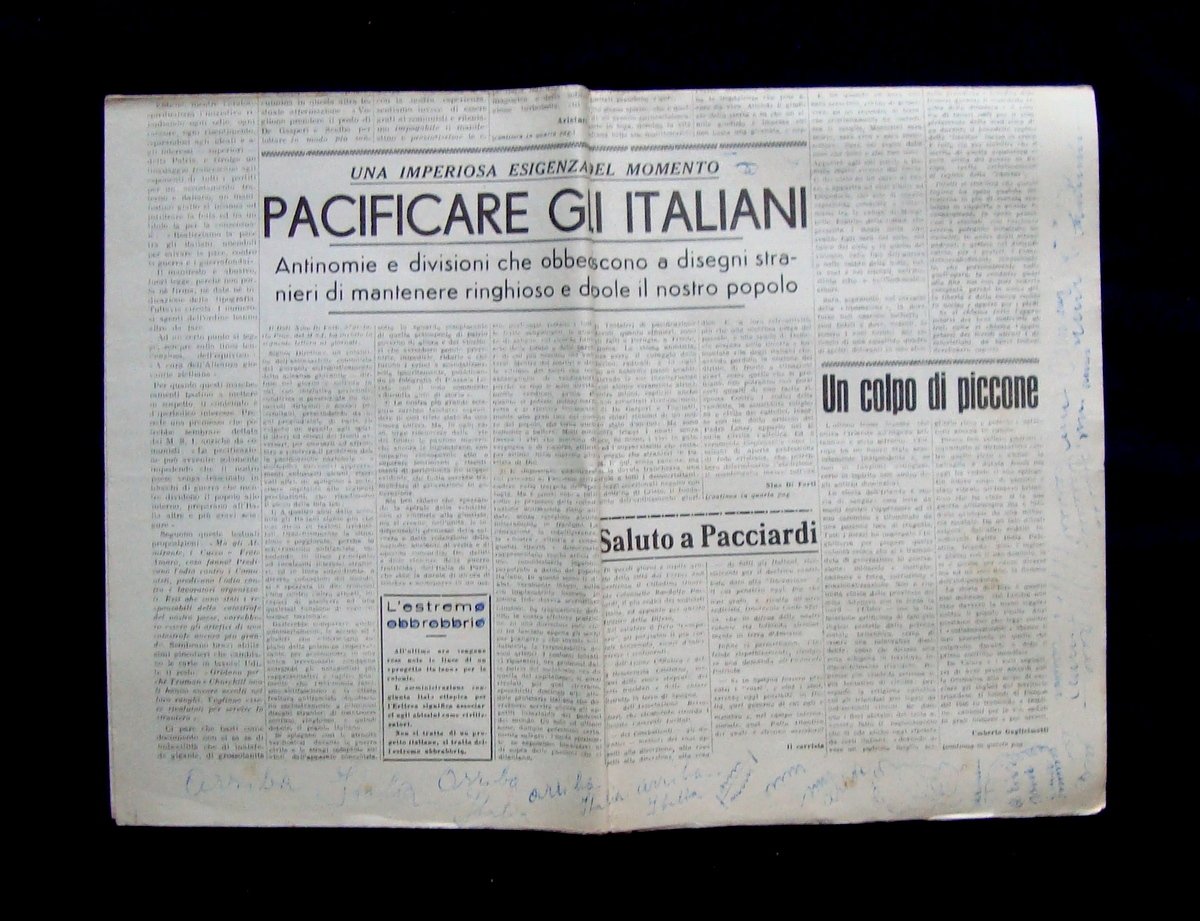 tre numeri periodico, I VESPRI D'ITALIA" Anno I - Numero 17 24 Aprile 1949 Anno I - Numero 18 1 Maggio 1949 Anno I - Numero 19 8 Maggio 1949 Palermo,1949; cm 60x42(cad) pp. 5 bifolio cad. Numeri completi. Condizioni di conservazione Esemplari in buone condizioni con tracce d'uso, pieghe di conservazione che si presentano leggermente ingiallite ,con minimi strappetti, margini con qualche brunitura e scritte a matita bl√π(vedi foto) al margine inf. del n 17. Numeri completi. SC03.D14807 blu "