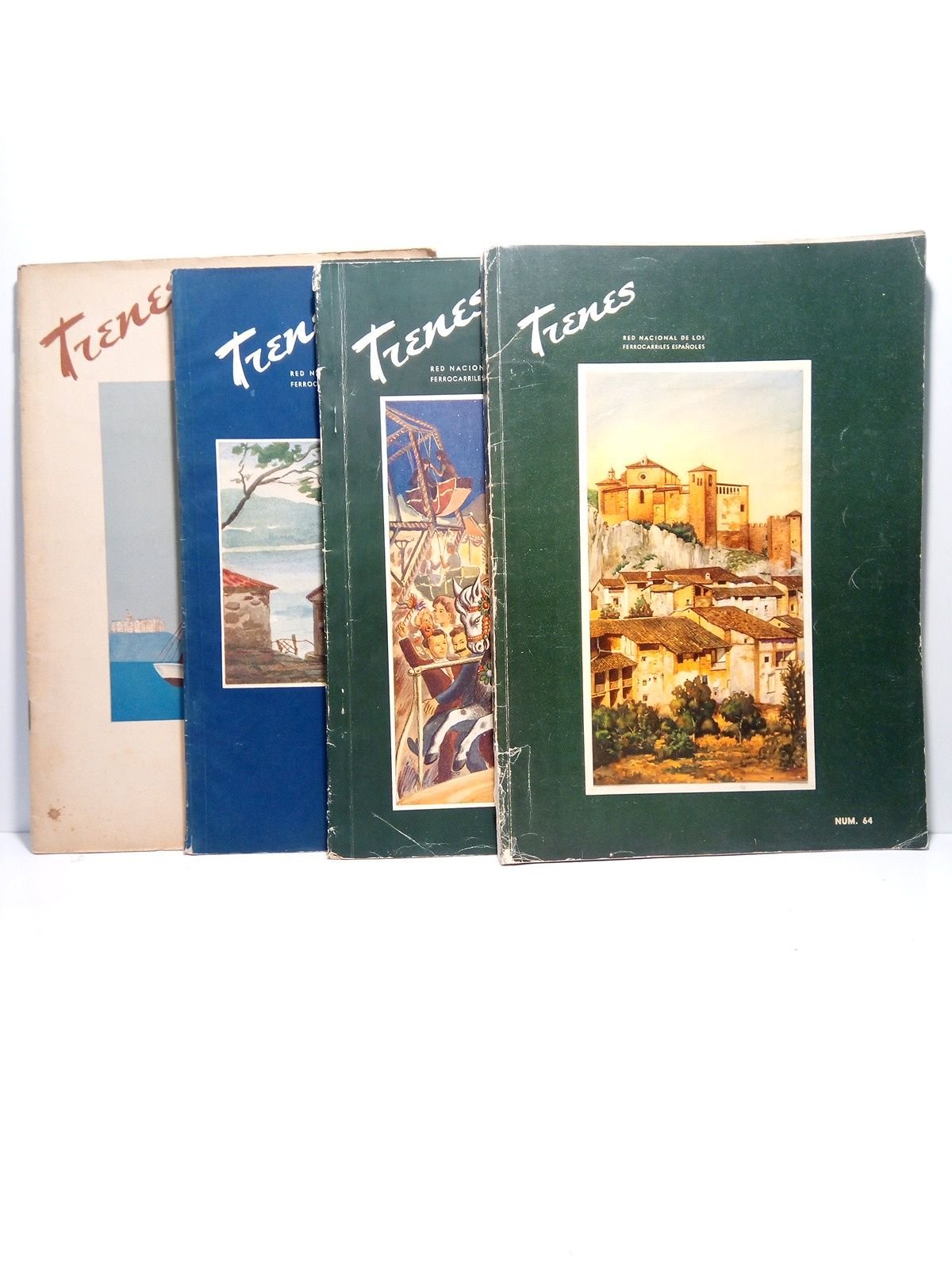 Madrid: [RENFE], 1940-1955; Folio; Papel cuché.- Poseemos los siguientes números: verano de 1940 (sin numerar); Nº 20, verano 1944; Nº 36, verano 1948; Nº 64, verano de 1955.- SE VENDEN SUELTOS, cada uno al precio indicado, menos el N.º 64 que se vende por 40 euros.* El Nº 64 tiene una falta en la base de la lomera. FERROCARRILES, TRANSPORTES, RED VIARIA Y OBRAS PÚBLICAS EN GENERAL