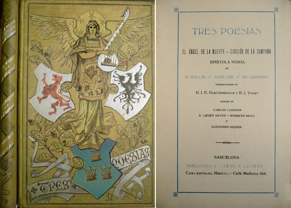 Tres Poesías: El ángel de la muerte. Canción de la campana. Epístola moral a Fabio. Traducciones de J.E. Hartzembusch y J. Yxart.