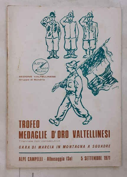 In 8° (cm. 24 x 17); pagg. 28; con illustraz. fotograf., cartina e profilo altimetrico del percorso; copertina a due colori con illustraz. di Novello. VG. ** Allegata busta intestata, con cartoncino intestato della Sez. Valtellinese dell'A.N.A. con invito dattiloscritto indirizzato ad un Colonnello degli Alpini.