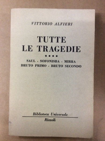TUTTE LE TRAGEDIE. IV. - Saul - Sofonisba - Mirra - Bruto Primo - Bruto Secondo.