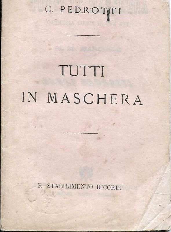 Tutti in Maschera. Commedia lirica in tre atti di M.M. Mrarcello.