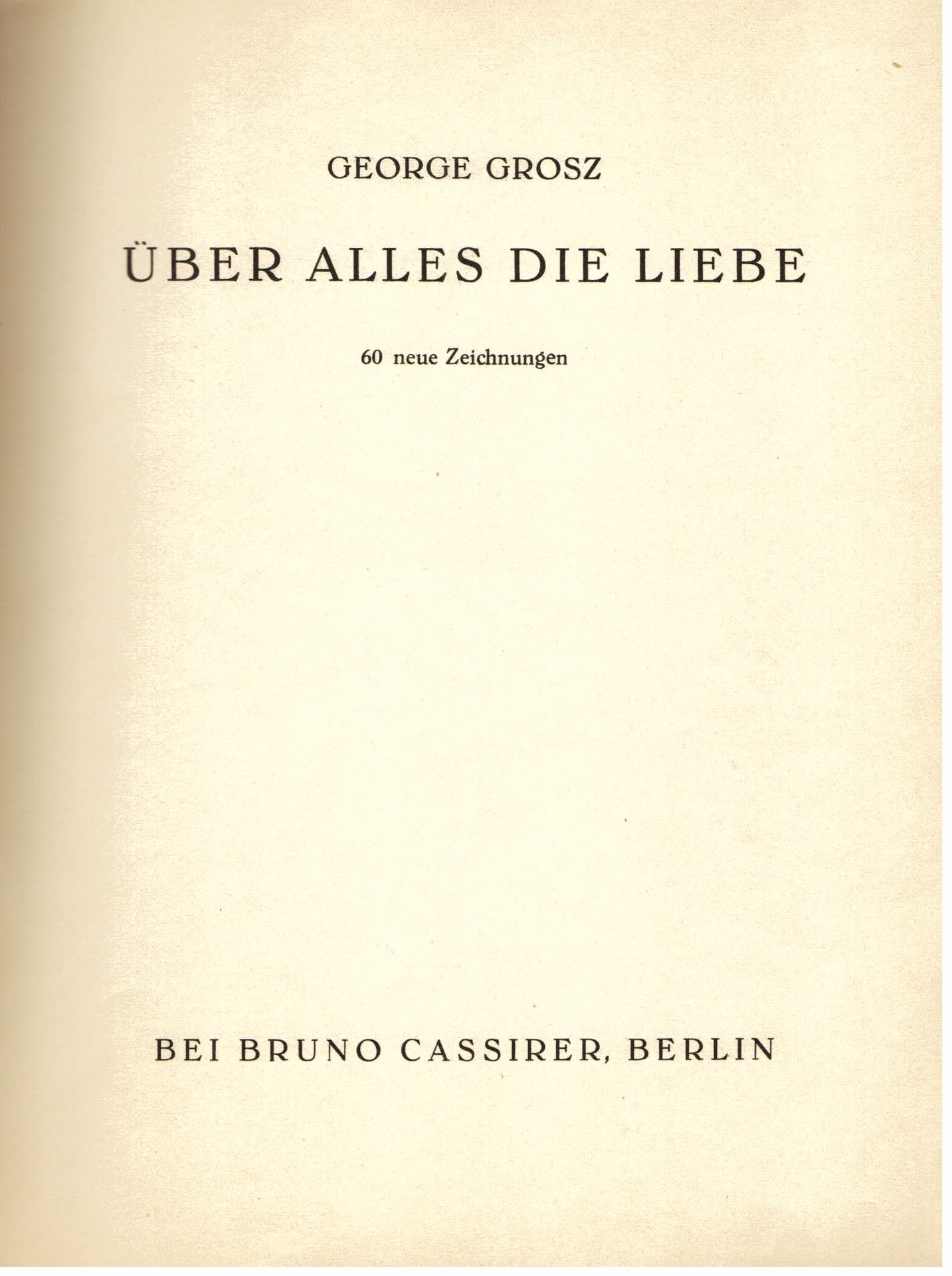 In-8°, pp. 64 con 60 illustrazioni in b.n. a p. pag., brossura posticcia con dorso originale conservato. Discreto stato. Prima edizione di questo graffiante albo di disegni satirici di Grosz, volti a sferzare la Germania sua contemporanea e la rapacità della classe dirigente, ammantata sotto la maschera della rispettabilità e delle convenzioni sociali. Hermann, 150. Lang, 39. Bülow, 91.
