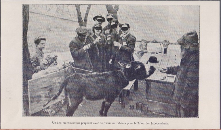 Un ane peignant un tableau pour le Salon de Independats. Immagine 1910