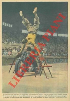 Un arco umano in bilico fra due sedie ed una motocicletta che vi passa sotto in velocità.