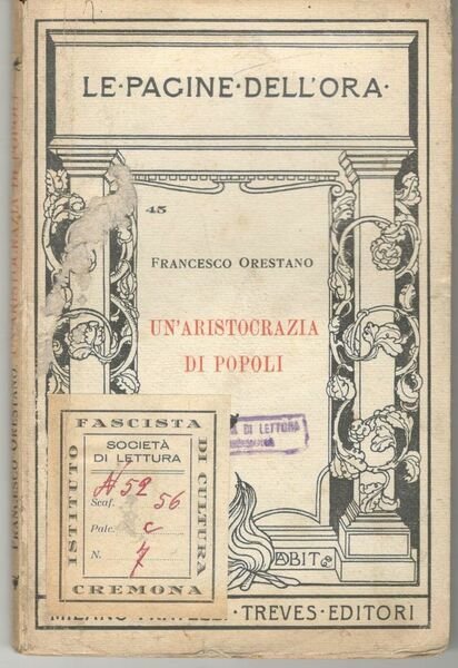 In 16°, pp. 70. Brossura editoriale figurata. Etichetta dell'Istituto fascista di cultura di Cremona sulla copertina e timbro sul frontespizio. Alone di umido al margine esterno. Le pagine dell'ora.
