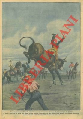 Un buttero tenta di frenare la fuga di una mandria di bovini: é stato lanciato in aria daun torello infuriato.