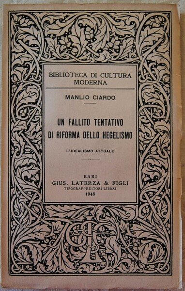 UN FALLITO TENTATIVO DI RIFORMA DELLO HEGELISMO.
