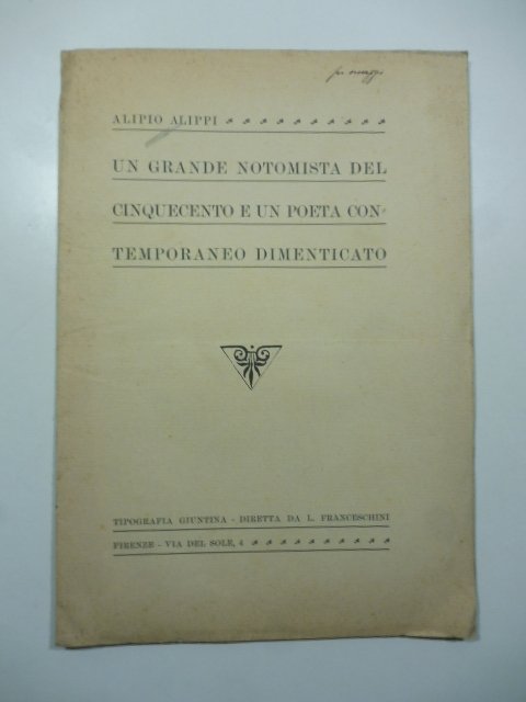 In 8 (cm 19 x 27), pp. 7 + (1b). Pagine intonse. Privo di legatura all'origine. Estratto editoriale dalla Rivista delle Biblioteche. Saggio su Bartolomeo Eustachio e Curzio Gonzaga.