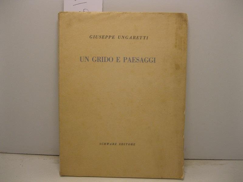 In 8, pp. 90 + (6) con 1 autografo in fac-simile e 5 disegni n. t. a piena p. Br. ed. Edizione originale di 310 es. con firma autografa di Ungaretti. Pregevole edizione Schwarz, terzo volume della collana Campionario diretta Giacinto Spagnoletti.