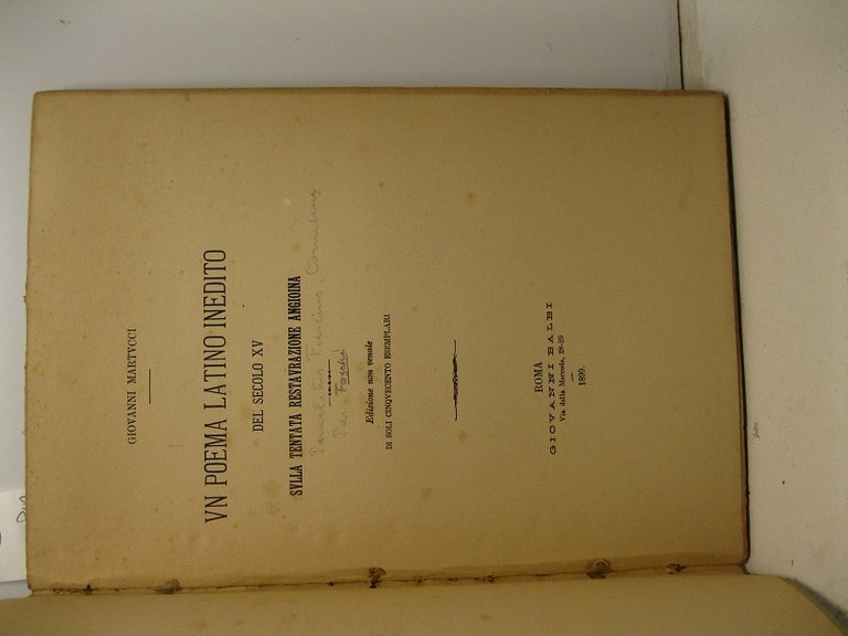 Un poema latino inedito del secolo XV sulla tentata restaurazione angioina. Edizione non venale di soli cinquecento esemplari