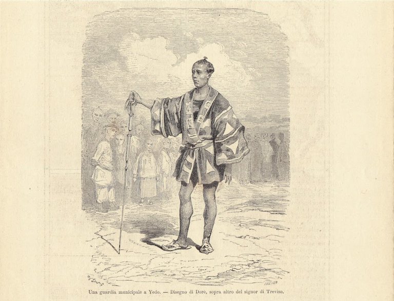 Una guardia municipale di Yedo (disegno G. Doré). Illustrazione 1864