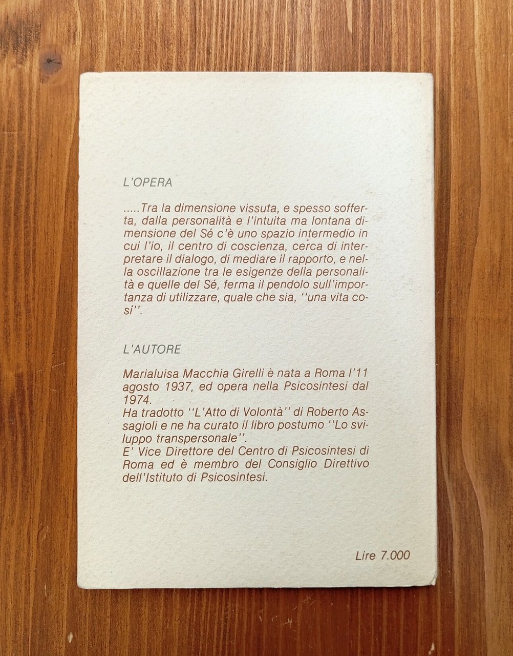 Brossura editoriale di piccolo formato (10,5 x 15 cm), 61 pagine. Indice consultabile nelle nostre immagini. Ottima copia di un volumetto decisamente raro, presente soltanto nella biblioteca fiorentina dell'Istituto di Psicosintesi fondato da Roberto Assagioli -- « Tra la dimensione vissuta, e spesso sofferta, dalla personalità e l'intuita ma lontana dimensione del Sé c'è uno spazio intermedio in cui l'io, il centro di coscienza, cerca di interpretare il dialogo, di mediare il rapporto, e nella oscillazione tra le esigenze della personalità e quelle del Sé, ferma il pendolo sull'importanza di utilizzare, quale che sia, "una vita così". »