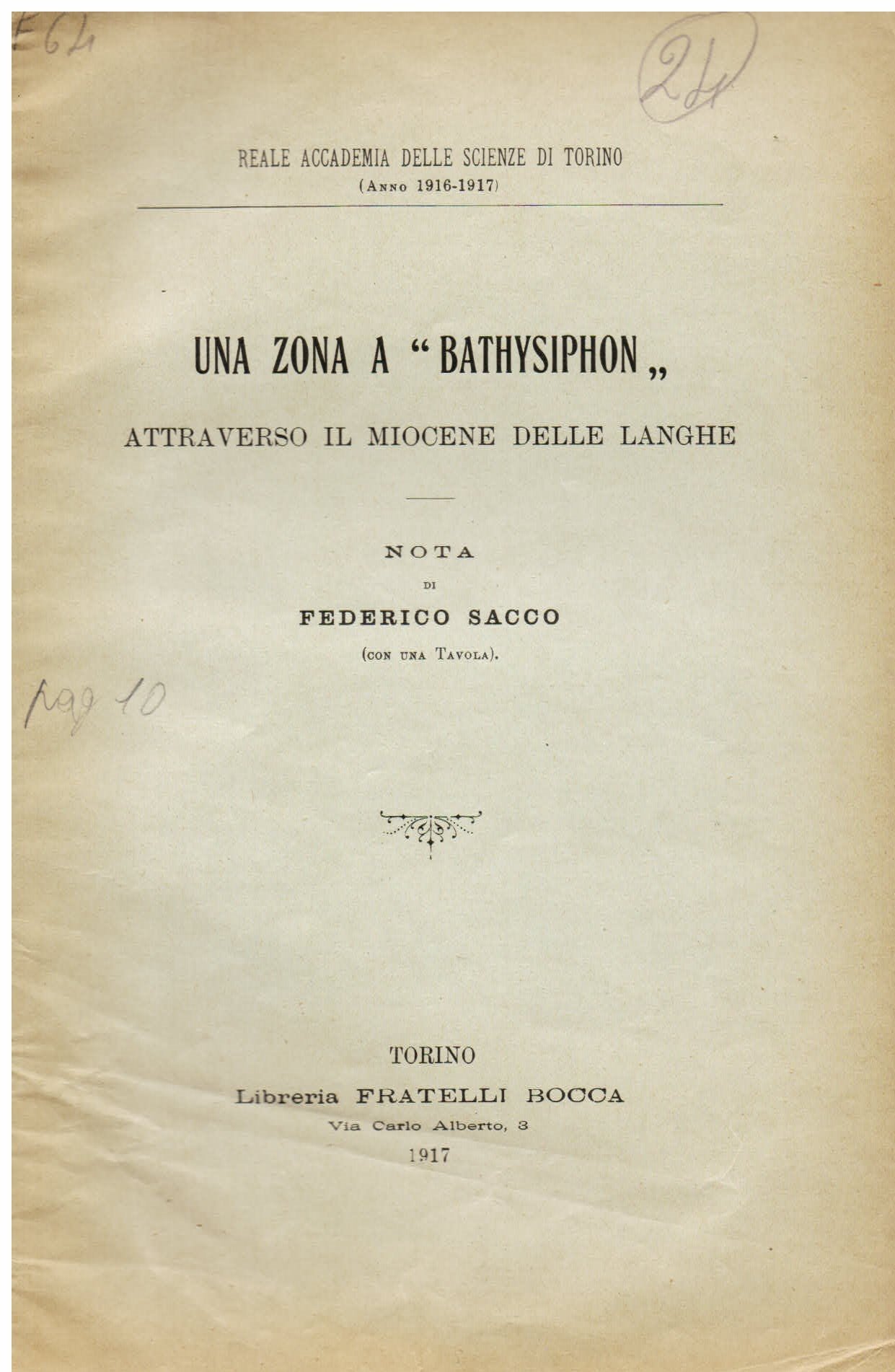 In-8°, pp. 749-758, brossura editoriale. Una tav. in b.n. f.t. Estratto dagli 'Atti della Reale Accademia delle Scienze di Torino', vol. LII, adunanza del 29 aprile 1917.
