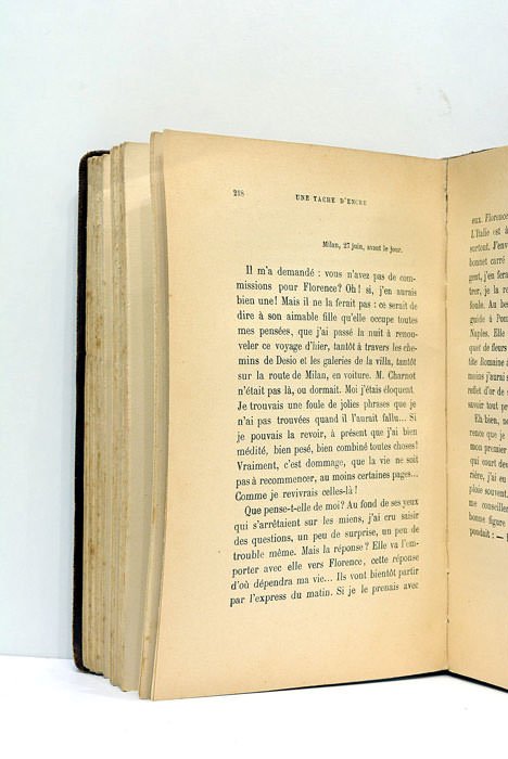 318 pages. (18,5x12cm.). Plein cuir souple. Couverture d'origine conservée. Dos lisse. Auteur et titre doré. Plats frottés. Forte mouillure sur le 1er plat. Déchirure en frontispice. Bon état intérieur.