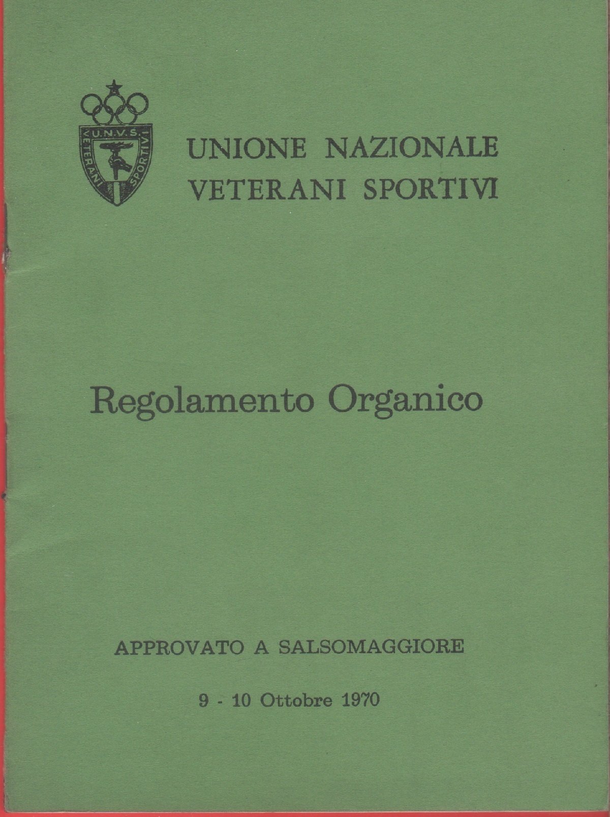Unione Nazionale Veterani dello Sport. Regolamento Organico, 1970